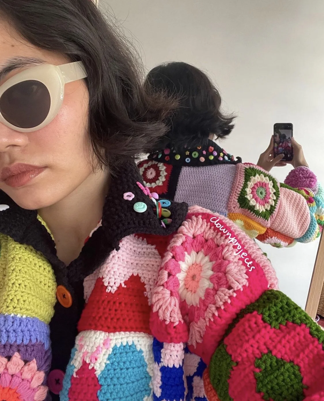 Quirky, eccentric and still maintaining a childlike playfulness, @clownprojects is known for the iconic “Franken Cardi” constructed in patchwork fashion with different crocheted panels that each boast a unique design. There are also adorable card holders and hats that sprawl across their feed. If you’re looking for some color inspiration and just some very solid adorable-ness, this is one to check out.