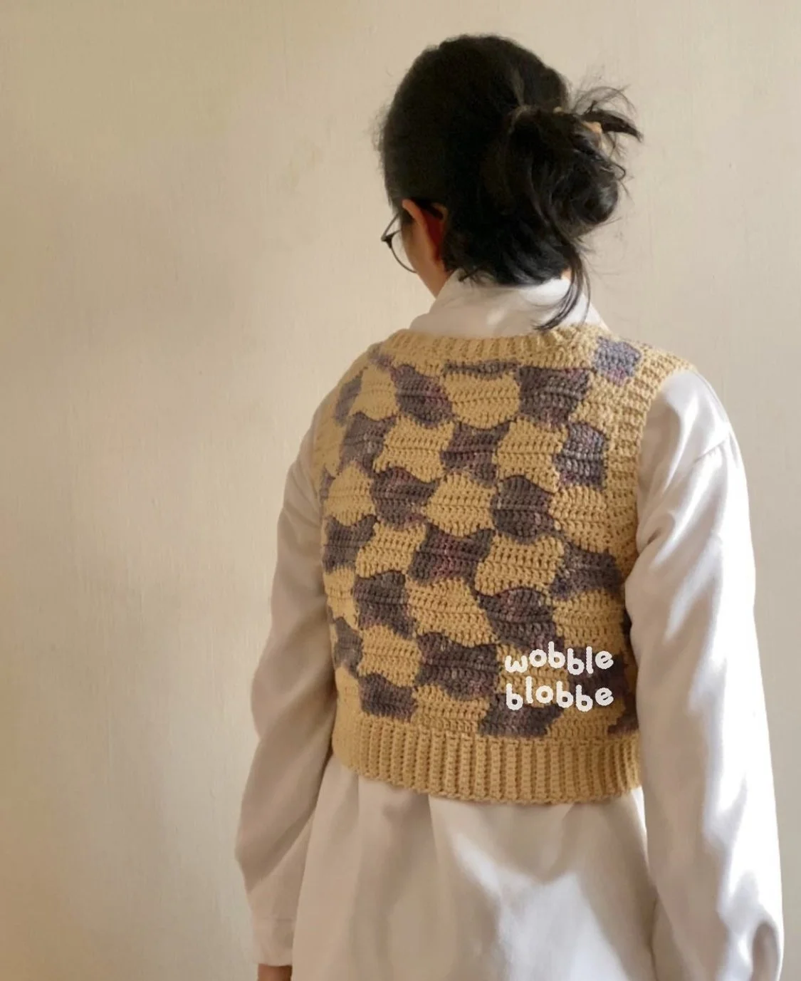 Time to showcase a pastel, kidcore crochet artist who has come out with many crochet patterns for original patches, trinket dishes, and of course, vests. Delicate, dream-like colors spread amongst cropped sweater vests and cardigans find koi fish patches peeking out from beside heart-shaped gingham coasters. A crochet artist who clearly knows the craft, @wobbleblobbe has found a way to incorporate many motifs from nature (bees, honeycomb structures, frogs, and mushrooms, to name a view) and make them part of a pastel, crocheted world
