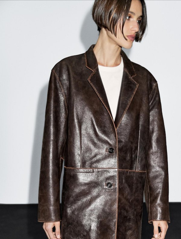 We love this modernized version, yet in a vintage cut of a leather blazer. The length allows it to be so versatile that you can wear it over any kind of look.