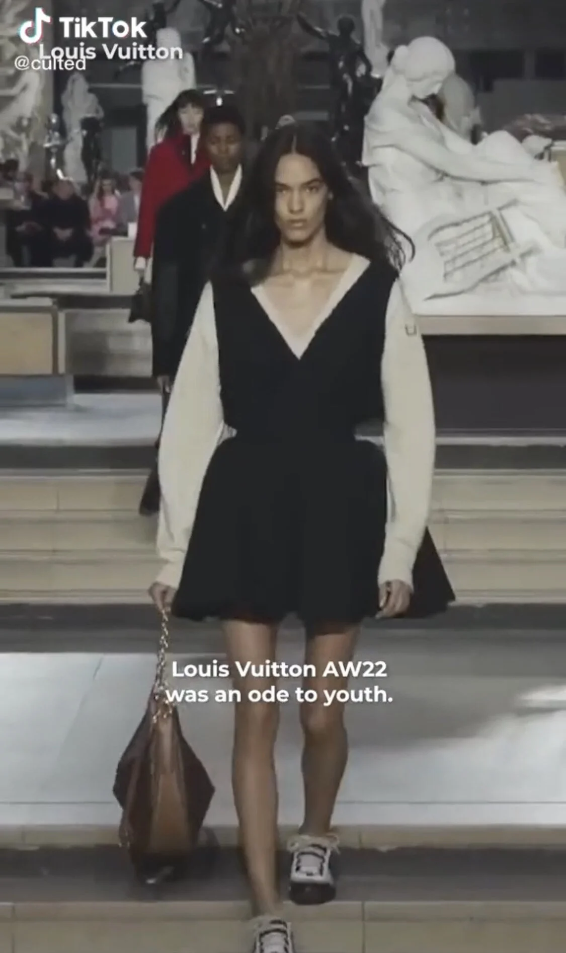 For Autumn-Winter 2022 Louis Vuitton revisits adolescents a time for coming of age. Designer Nicolas Ghesquière created a collection of gender fluid pieces, commenting that we need to no longer call it menswear, but perhaps think of a new word.