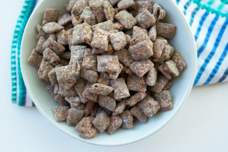 3. Add chocolate mixture to cereal in bowl; stir gently to evenly coat. Place mixture in a large, zip-top plastic bag. Add powdered sugar to bag. Seal bag; shake until cereal mixture is fully coated. Transfer mixture to a rimmed baking sheet lined with wax paper; cool completely. Store in an airtight container up to 1 week.