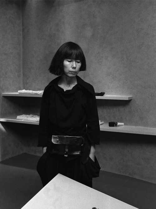 Rei Kawakubo at the 1983 opening of CDG shop in Henri Bendel, New York City.