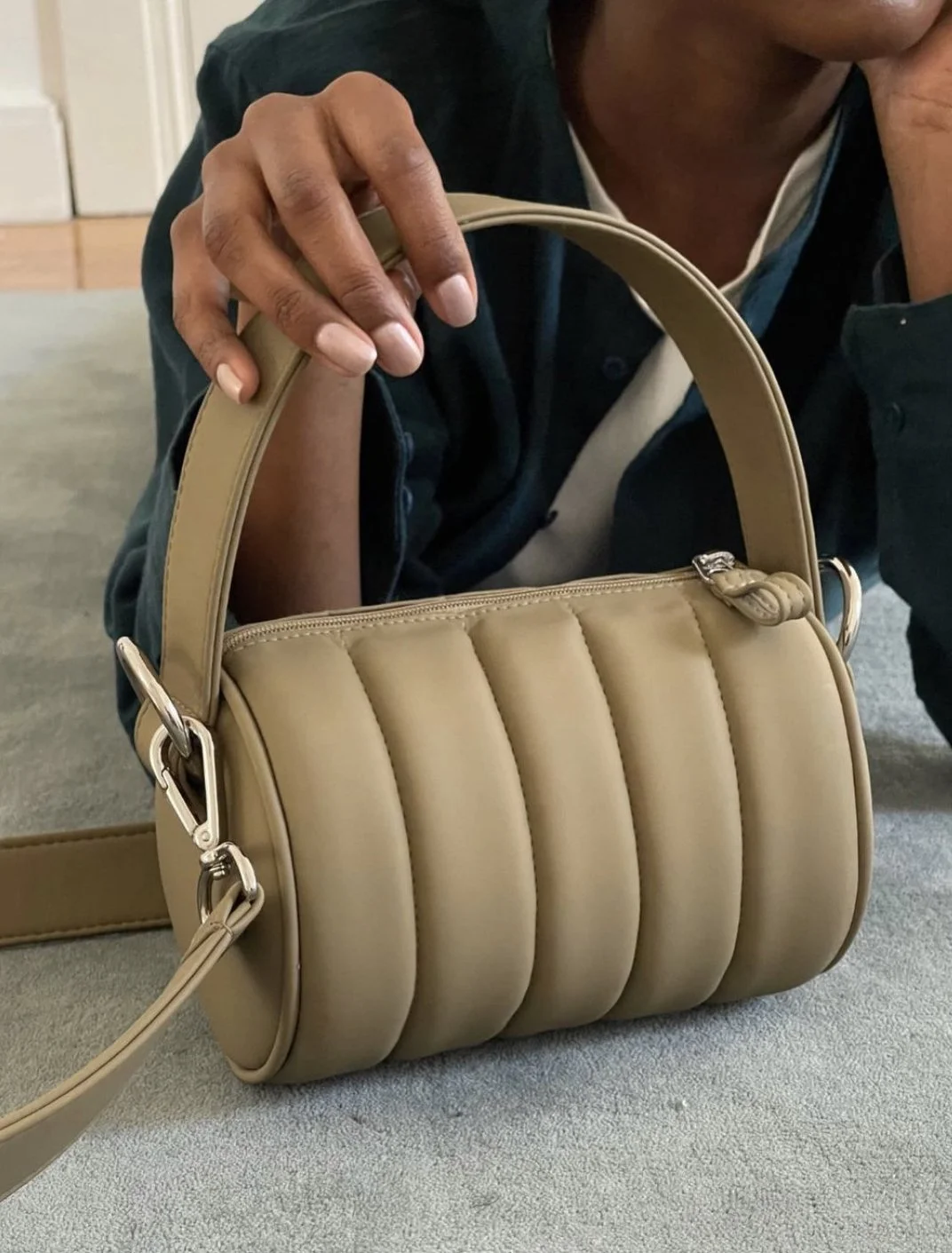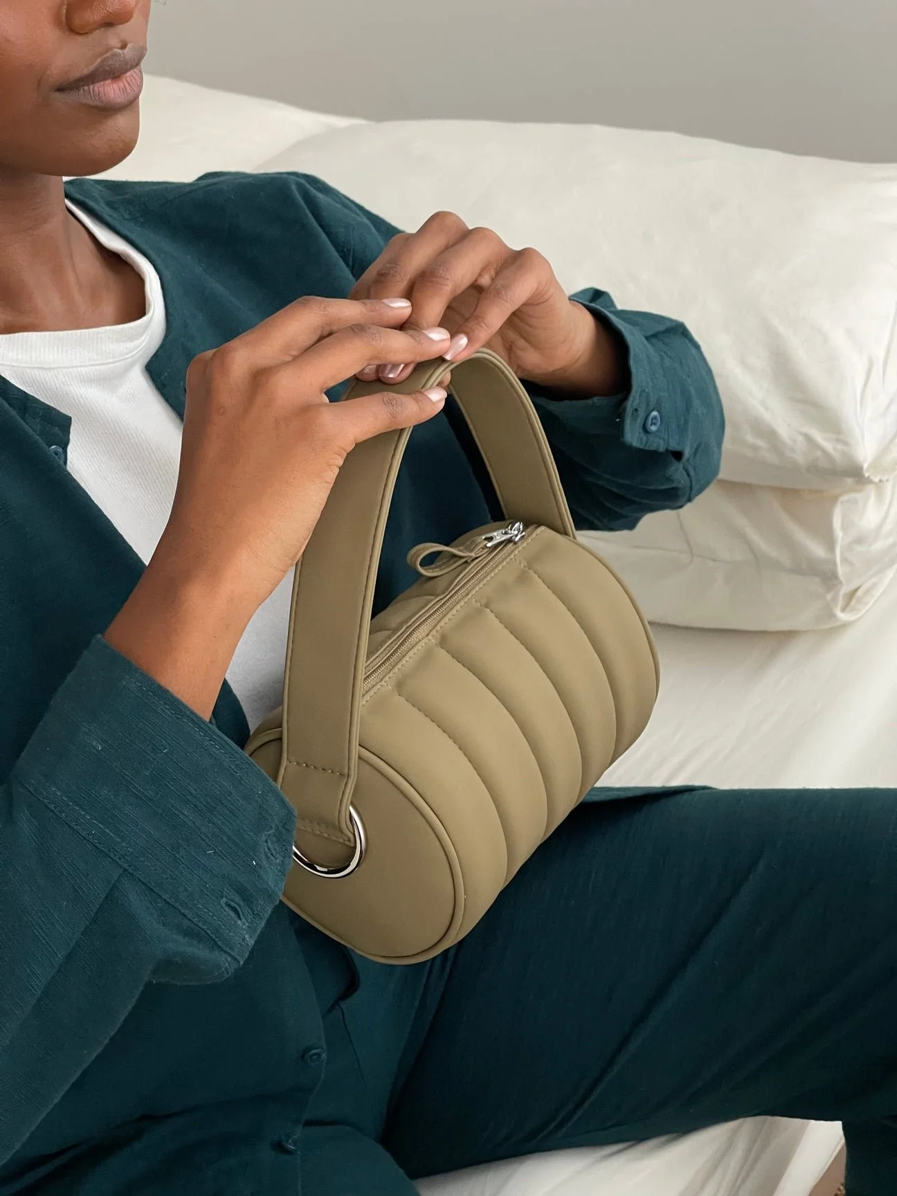 QUILTED MINI DUFFLE BAG IN GRIZZLY * $378