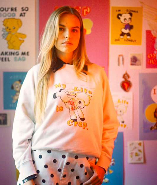 British artist and illustrator Magda Archer creates pop art meets nostalgic memorabilia. She captures childhood tongue and cheek into an art form giving it kitsch sensibility. Her foray into fashion began in 2012 when her painting “My Life is Crap” was used in a Comme des Garcons ad campaign. Now in a collaboration with Marc Jacobs, Archer delights the fashion brand with her retro expertise and imagination with cheeky slogans, “stay away from toxic people”, “you’re so good at making me feel bad”, and “I hate art'“.