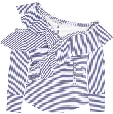 Self-Portrait / Off the shoulder ruffled striped poplin blouse
