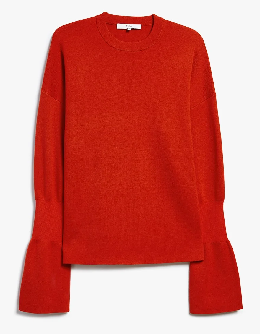 TIBI / EASY PULLOVER IN RIBBON RED